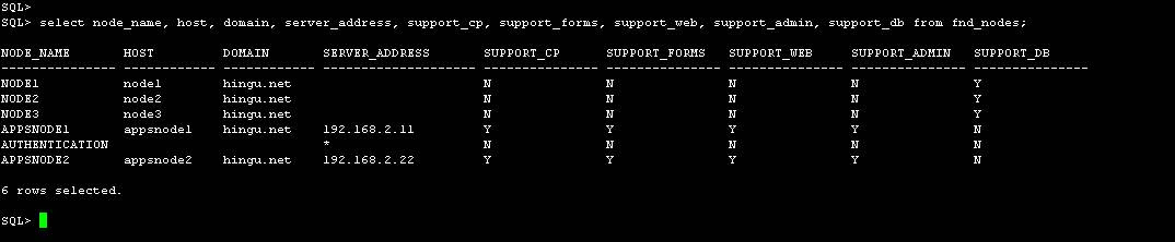 At this stage, the FND Nodes contained the RAC nodes information in the application database.